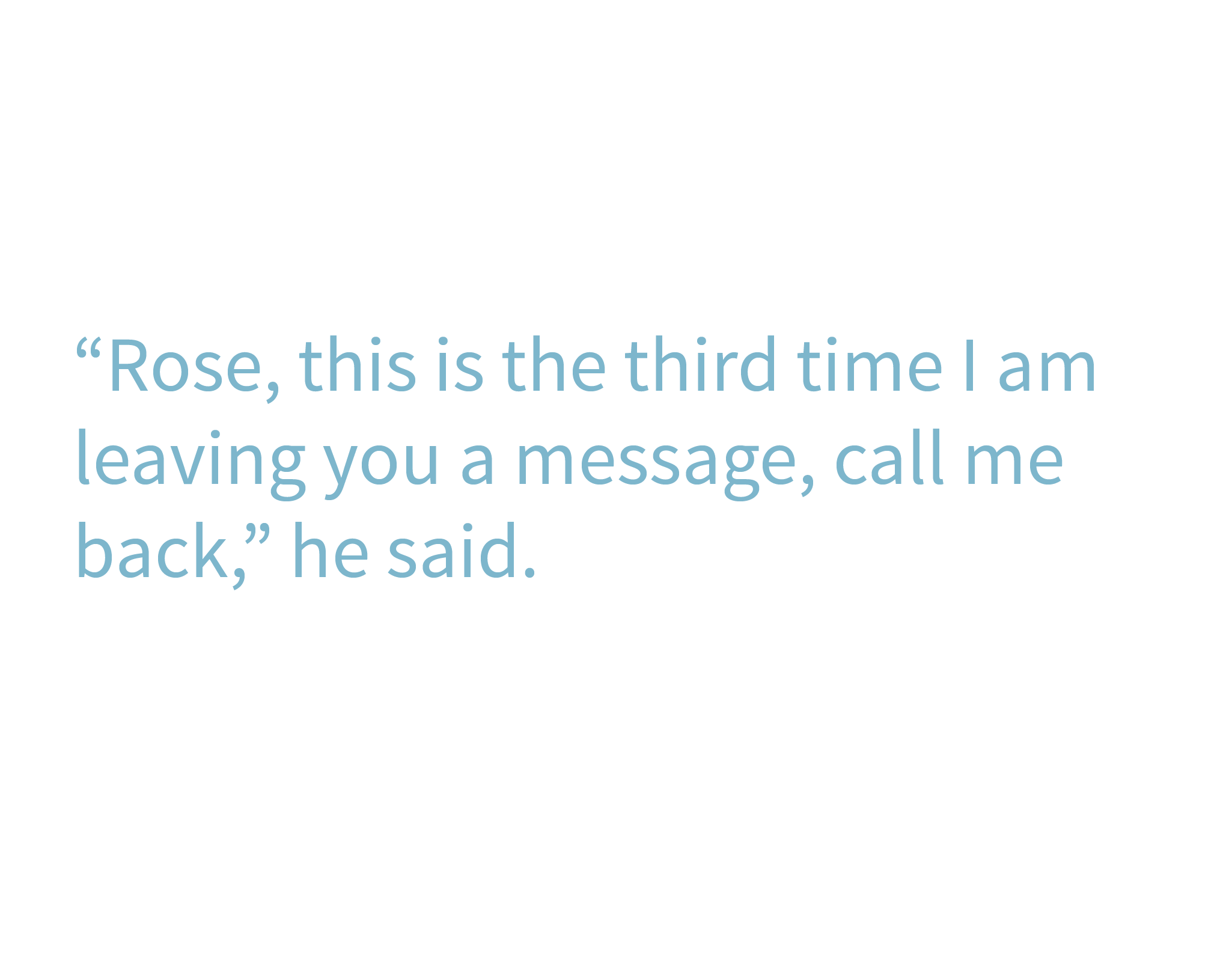 “Rose, this is the third time I am leaving you a message, call me back.” He said.
